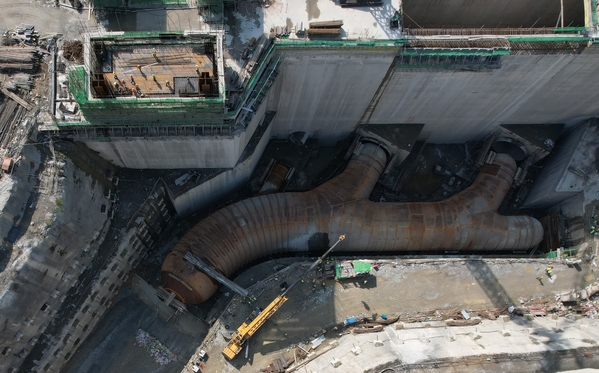 3月30日,由中國電建承建的巴基斯坦塔貝拉水電站五期擴建項目廠房段壓力鋼管岔管群聯合水壓試驗成功,為年度生產目標實現及首臺機組按期發電奠定堅實基礎。 塔貝拉水電站位于巴基斯坦首都伊斯蘭堡西北方,距伊斯蘭堡約113公里,是目前巴基斯坦境內最大的水電站,也是世界上最大的土石壩水電站。新增3臺單機470兆瓦混流式水輪機機組,擴建后的總裝機容量將增至6298兆瓦。擴建工程鋼岔管最大直徑達14.3米,岔管群制安工程量約7800噸,最大板厚130毫米,為目前世界在建最大鋼岔管群。 本次完成水壓試驗的岔管群包含1個泄壓管和3個支管,最大公切球直徑14.6米,最大板厚130毫米,充水后總重超過12000噸,尺寸與施工難度均為目前世界之最。 鑒于該岔管群巨大尺寸與復雜結構,對安裝精度、焊接質量等要求極為嚴苛。項目部自岔管安裝啟動以來,多次組織技術研討,制定專項施工方案,并邀請各級領導、專家對技術要求、安全措施等進行深入論證;施工過程中嚴格質量管控,試驗前開展多輪專項交底與培訓,并進行全面檢查驗收,為試驗一次性通過提供堅實保障。 試驗全程歷時64小時,經檢測,各項參數均處于正常范圍,安裝質量優良,獲得業主及監理工程師的高度評價與認可。此次試驗圓滿成功,全面驗證岔管結構強度、制造焊接質量及設計合理性,為機組長期安全穩定運行筑牢了安全底線。 |