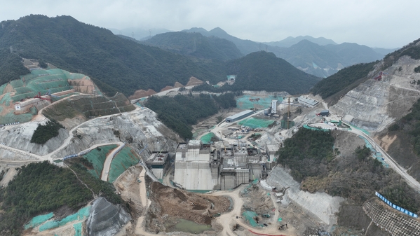 浙江寧海清溪水庫工程設計總庫容8511萬立方米,年供水量5857萬立方米,是國家“十三五”水利改革與發展規劃重點項目、浙江省“百項千億”防洪排澇工程之一,也是水電十一局國內重大水利工程建設EPC領域的新突破。 該水庫的建成將有效緩解三門灣區域供水壓力,顯著提升下游防洪標準,為寧波南部高質量發展及甬臺一體化發展提供水安全、水資源與水生態支撐。 把握“關鍵環節” 導截流是清溪水庫建設的控制性節點,其成敗直接關系到大壩主體混凝土澆筑能否在干地環境中推進,更是安全度汛的重要保障,任務艱巨且時間緊迫,必須緊盯關鍵環節全力推進。 為確保在汛期來臨前完成任務,項目團隊先立決心、再謀行動。項目在動員會上明確方向:全員要同心同向、集智聚力、敢拼敢干,務必如期完成導截流施工。 針對導流洞地質條件復雜的核心難題,項目團隊多次召開專項方案討論會,形成“先穩后挖”的破解思路:先通過優化楔形掏槽技術、爆破參數,搭配超前注漿小導管與鋼支撐支護體系,成功實現洞臉穩定;再以“短進尺,弱爆破,強支護”施工法,穩步推進導流洞開挖。 施工過程中,各崗位人員各司其職,為開挖任務筑牢支撐。測量人員精準完成放樣與復核,確保開挖斷面貼合設計、杜絕超欠挖問題,保障洞體結構穩定;技術人員扎根現場指導,動態優化爆破與支護工藝,高效應對不良地質段挑戰,確保開挖工序連貫銜接;試驗人員嚴守質量關口,第一時間核查進場材料、反饋復檢情況,高頻取樣掌握混凝土試塊強度,為工序銜接提供精準數據支撐,全力保障開挖面安全。項目如期完成導流洞開挖任務,為截流施工奠定基礎。 進入截流施工階段,項目團隊進一步推行“技術引領-生產調度-質量安全-綜合保障”一體化管理機制,實現全過程精準管控。技術組牽頭編制專項施工方案,生產調度組統籌資源保障工序銜接,質量安全組落實隱患整改閉環,設備管理組保障機械高效運轉,交通保障組確保運輸道路暢通。 最終,導截流工程以零事故、高質量通過驗收。當清溪水在導流洞中平穩奔流,大壩基坑得以在干地環境中扎實推進,項目建設取得了階段性成果,為后續大壩主體施工鋪平了道路。 架起“筑壩走廊” 隨著導截流工程通過驗收,清溪水庫正式邁入大壩主體施工階段。但新的挑戰隨之而來,大壩為常態混凝土重力壩,壩高101米、壩頂長366米,需完成約86萬立方米混凝土澆筑,如何在規定工期內實現混凝土高效、精準入倉,成為主體施工的核心難題。 針對這一挑戰,項目技術攻關小組創新提出安裝重力壩大噸位大跨度輻射式纜機的設想,依托兩岸山體架設塔架,實現30噸混凝土罐凌空運輸,直接將混凝土輸送至各澆筑倉面,既實現全覆蓋澆筑,又能同步提升效率與質量。 “這種纜機覆蓋范圍廣、起重能力強,還不受壩體上升限制,能在山體間架起一條‘空中運輸走廊’,正好契合清溪水庫的施工需求。”技術部部長劉文波點出了這一方案的核心優勢。 然而,纜機安裝并非易事。其安裝位置位于左右岸高陡邊坡,常規測量方法無法滿足精度要求,精準測量定位成了首要難點。 測量隊長李旺帶領隊員,每日背著全站儀、GPS接收機在荊棘叢生的山坡穿梭;面對地形復雜、植被阻礙視線的問題,他們采用“全球衛星導航系統(GNSS)+全站儀”雙保險方案建立安裝控制網,在峽谷兩側山頂設多個基準控制點,經反復測量校核,最終將誤差控制在毫米級,為纜機后續安裝筑牢數據基礎。 解決了測量難題,主索過江又迎來新考驗。纜機主要由主塔、副塔、主索、牽引索、起升索構成,其中主索過江是決定整個纜機安裝成敗的關鍵。 具體操作中,首先在兩岸架起兩根臨時承載索;再通過牽引繩將主索已澆鋅的索頭從右岸副塔牽引至主塔,并實時測量記錄長度,達到設計要求后停止操作;最后對右岸副塔側的主索進行切割綁扎與澆鋅處理。 后續實際作業時,主索主要承擔吊重負荷,牽引索負責控制重物水平移動,起升索負責重物垂直升降,三者需始終緊密協同,才能保障纜機穩定運行。 當調試團隊最后一次確認數據無誤,纜機巨大的滑輪組緩緩轉動,滿載混凝土的吊罐劃過百米高空,將混凝土精準倒入壩體澆筑倉內,困擾主體施工的混凝土入倉難題徹底破解,為大壩主體澆筑打通了關鍵運輸通道。 探索“智能建造” 項目始終以數字化技術為核心,將其深度融入工程建設全周期,推動施工從“傳統經驗驅動”向“智能數據管控”升級,圍繞質量預防、效率提高、安全管理三大核心領域,逐一破解建設難題。 大體積混凝土澆筑中,隱蔽工程振搗隱患曾是施工痛點,傳統模式下,振搗不到位引發的蜂窩麻面、漏振導致的強度不足問題,需等到澆筑完成后才會暴露,最終只能通過鑿除、補澆進行“事后補救”。 針對這一問題,項目開發智能振搗在線監測系統,在振搗機上安裝高精度傳感器,實時記錄振搗深度、時長,數據同步至手機終端。以往事后才能發現的問題,如今可實時預警、當場調整,從源頭杜絕隱患。 “以前施工靠經驗,發現問題已沒法挽回;現在振搗問題實時看得見、及時改,隱患藏不住。”項目技術員張博琛說。 溫度控制是另一大質量難點。清溪水庫大壩分21個壩段,月均澆筑量達5.5萬立方米,單倉最大澆筑方量0.5萬立方米,倉面大、體量大、工序雜。項目為此將《高壩常態混凝土施工全過程智能溫